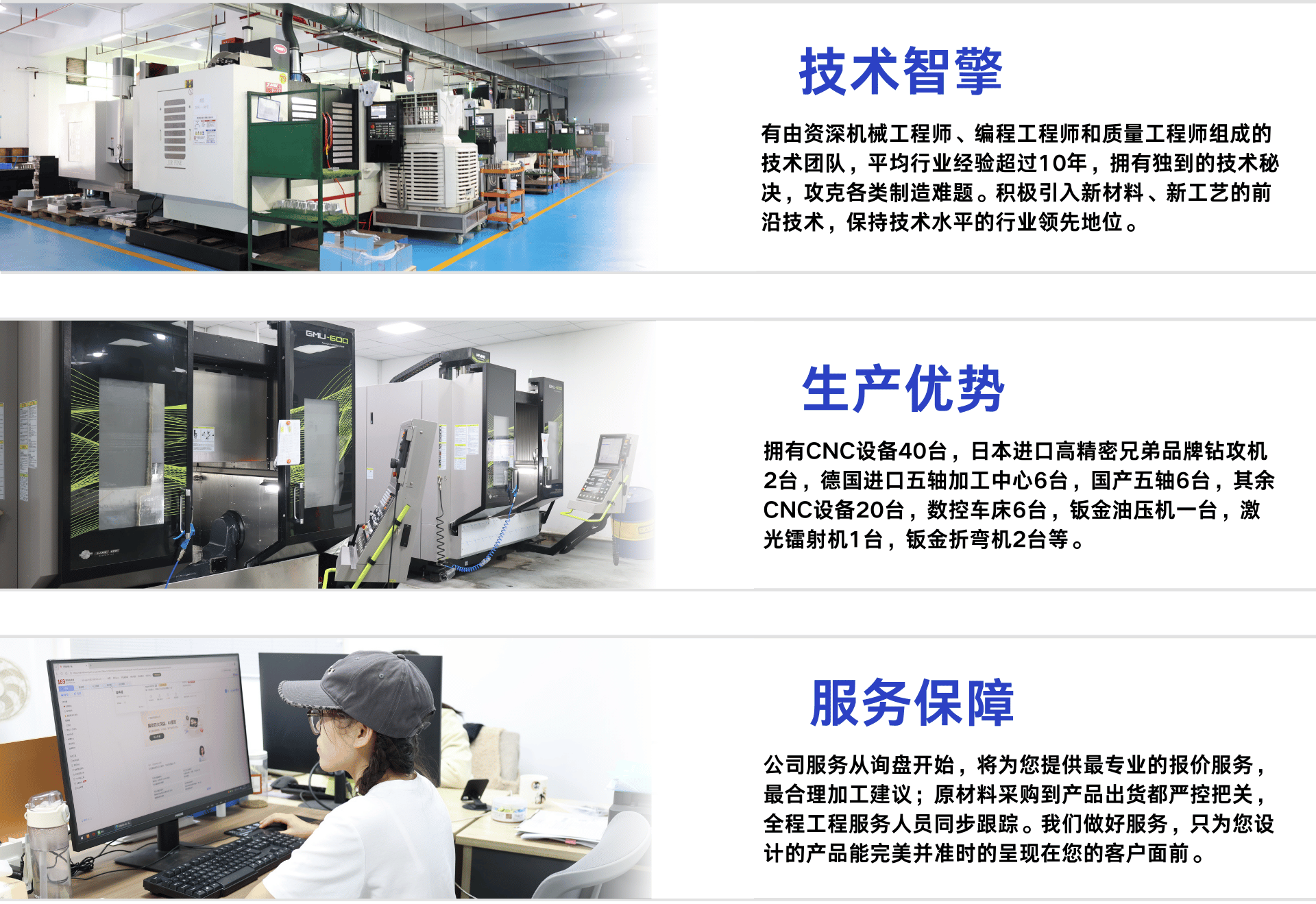 公司自建立以来,致力于先进制造业的改革和创新发展,目前拥有一批专业的管理团队和生产队伍60多人,术业有专攻,公司向客户提供新产品研发阶段的验证、试制及小批量生产的解决方案,为客户缩短研发周期及节约研发成本。我们一直秉承“质量第一、精益求精”的经营理念,通过服务创新,来满足我们所服务客户的需求。